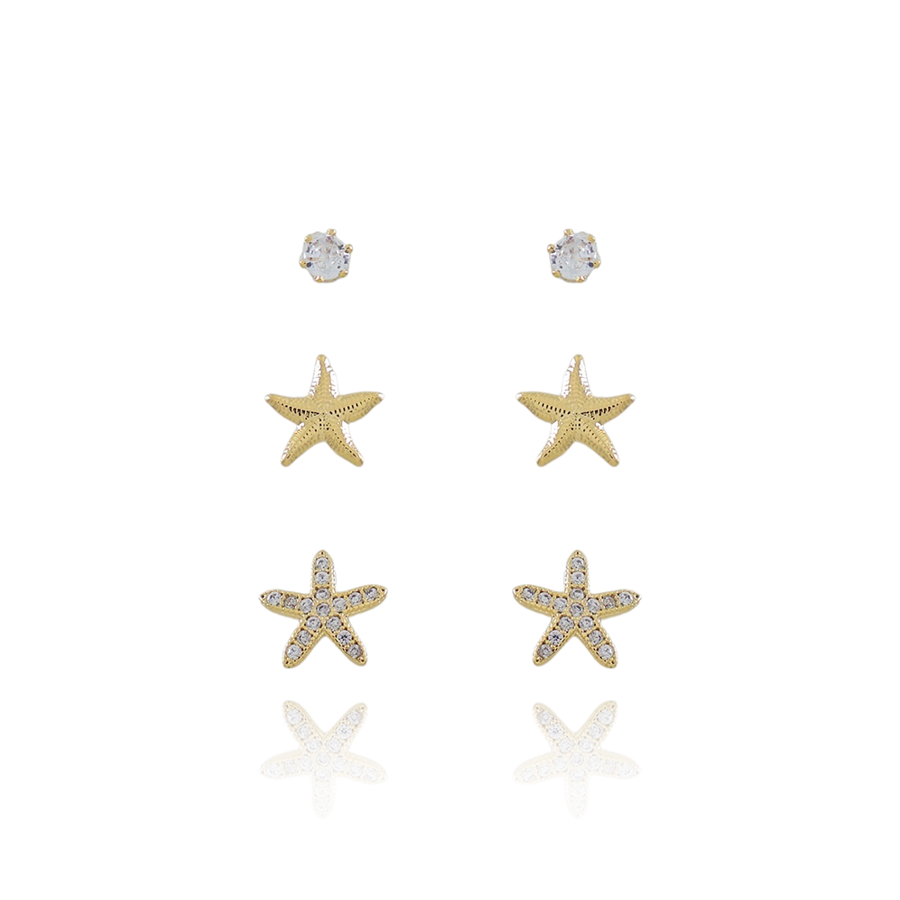 Trio-1187-Do Trio De Brincos Estrelas Do Mar Com Zircônia Cristal.