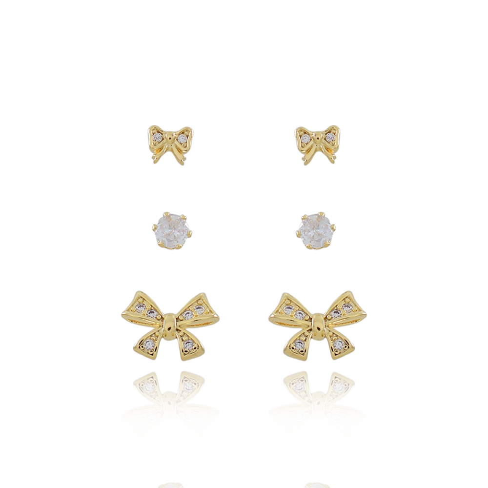Trio-1209-Do Trio De Brincos De Laços E Zircônias Cristal.