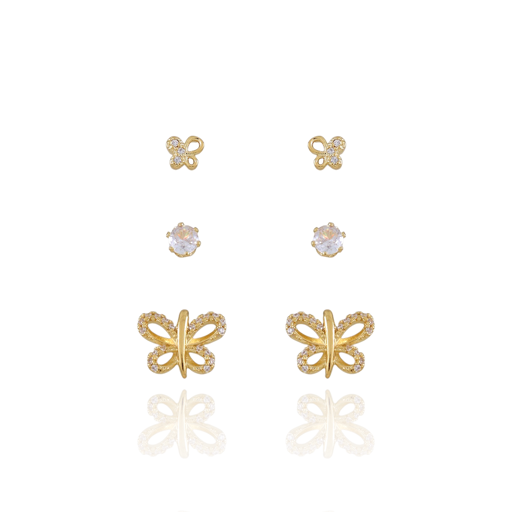 Trio-1211-Do Trio De Brincos De Borboletas E Zircônia Cristal.