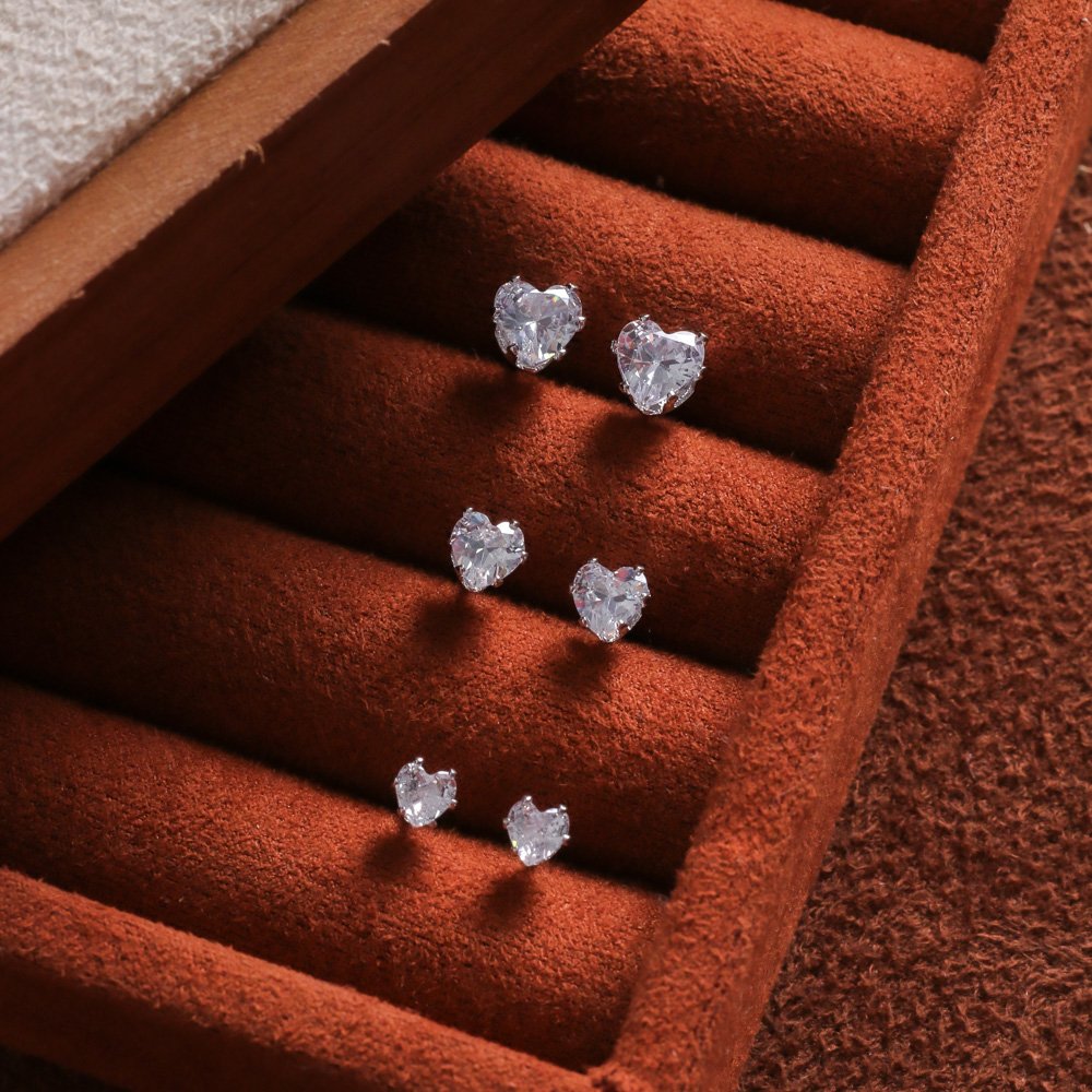 Trio-360-Rd Trio De Brincos De Corações Cristais - Ródio Branco (3,2cm).