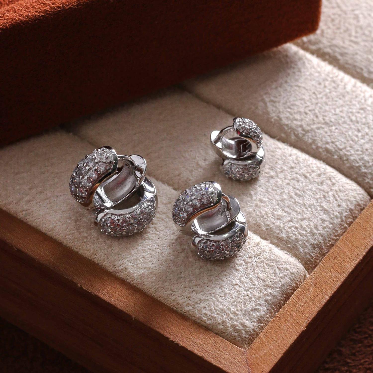 Trio-697-Rd Trio De Brincos De Argolas Articuladas Cravejadas - Ródio Branco.