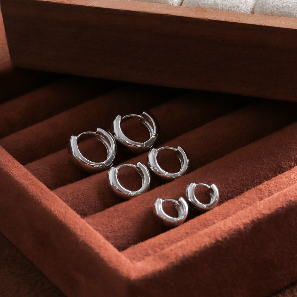 Trio-708-Rd Trio De Brincos De Argolas Articuladas - Ródio Branco (0,9cm/1,1cm/1,3cm).