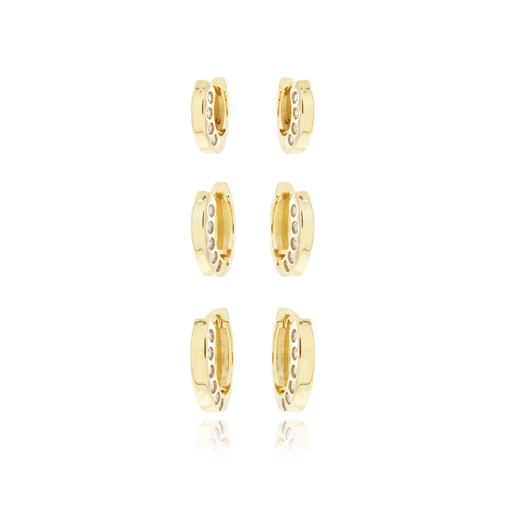 Trio-794-Do Trio De Brincos De Argolas Articuladas Cravejadas De Zircônias. Trio-794-Do Trio De Brincos De Argolas Articuladas Cravejadas De Zircônias.