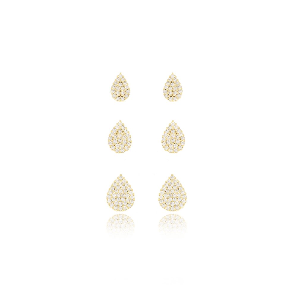 Trio-797-Do Trio De Brincos De Gotas Cravejadas De Zircônias. Trio-797-Do Trio De Brincos De Gotas Cravejadas De Zircônias.
